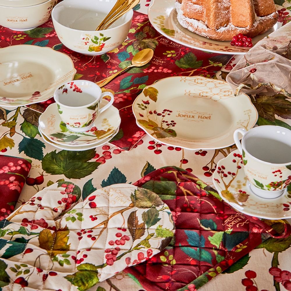 Круглая скатерть Ribes диаметром 170 см выполнена из хлопка и украшена выразительным растительным принтом с листьями и красными ягодами. Натуральная ткань создаёт уютную атмосферу и подходит как для повседневной сервировки, так и для праздничного стола. Диаметр 170 см идеально подходит для круглых столов среднего размера, красиво драпируется и добавляет акцент в интерьере.
