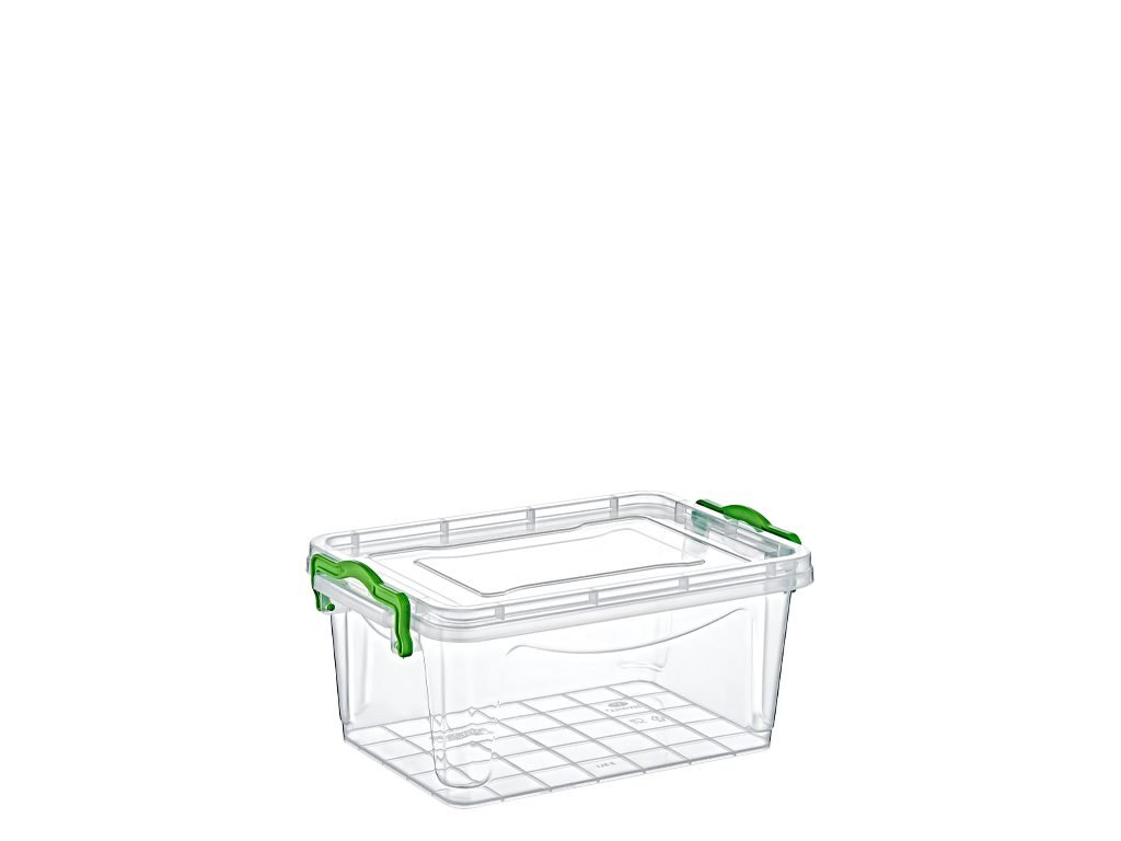 Recipient compact, transparent, fabricat din plastic alimentar rezistent, cu un capac care se închide ermetic cu închizători laterale sigure. Potrivit pentru depozitarea alimentelor, articolelor mici, papetăriei sau accesoriilor. Designul sigilat previne pătrunderea umezelii și a mirosurilor. Dimensiunea convenabilă face ca recipientul să fie practic pentru utilizare acasă, la birou sau în deplasare. Dimensiuni: 11x17x26cm.